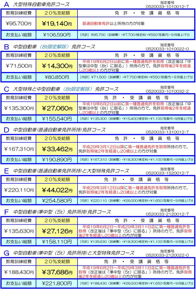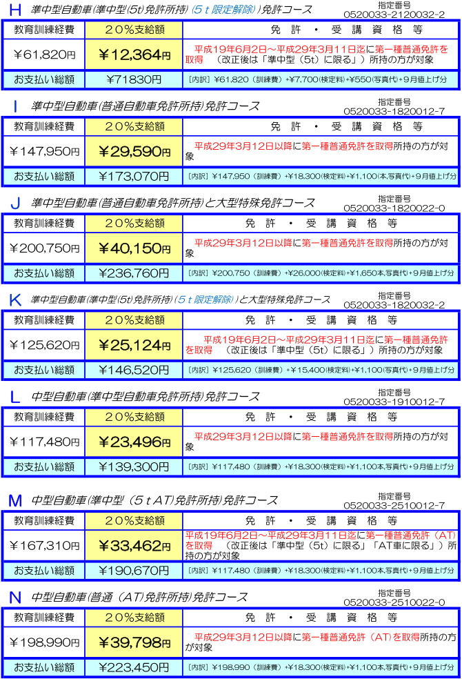 注:中型自動車(普通自動車(AT含)免許所持者又は準中型(5t)免許所持)及び準中型自動車(普通自動車(AT含免許所持)免許コース受講希望の方は本籍記載の住民票1通ご準備ください。